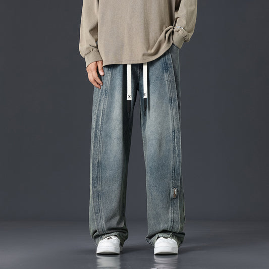 Retro Patchwork Washed Oversized Jeans Men