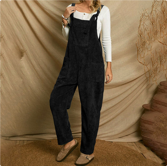 Corduroy Multi Pocket Shoulder Strap Jumpsuit
