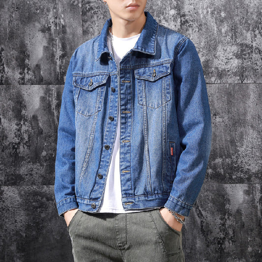 New men's Korean version solid color casual denim jacket for couples, lapel, plus size, same jacket