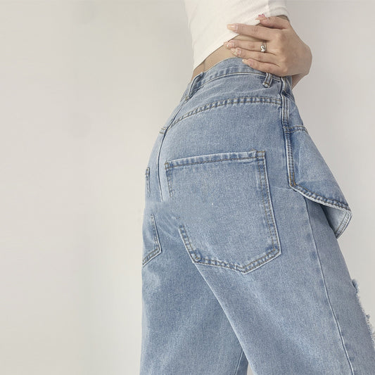 Retro Tattered Jeans Pants Love Wide Leg Jeans