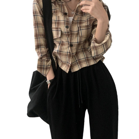 Short Long Sleeve Plaid Shirt Fashion Baggy Coat