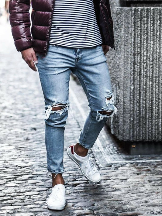 Slim-fit Ripped Stretch Men's Denim Trousers