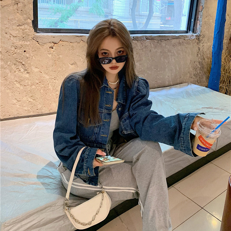 Lapel short cardigan all-match long-sleeved top trend